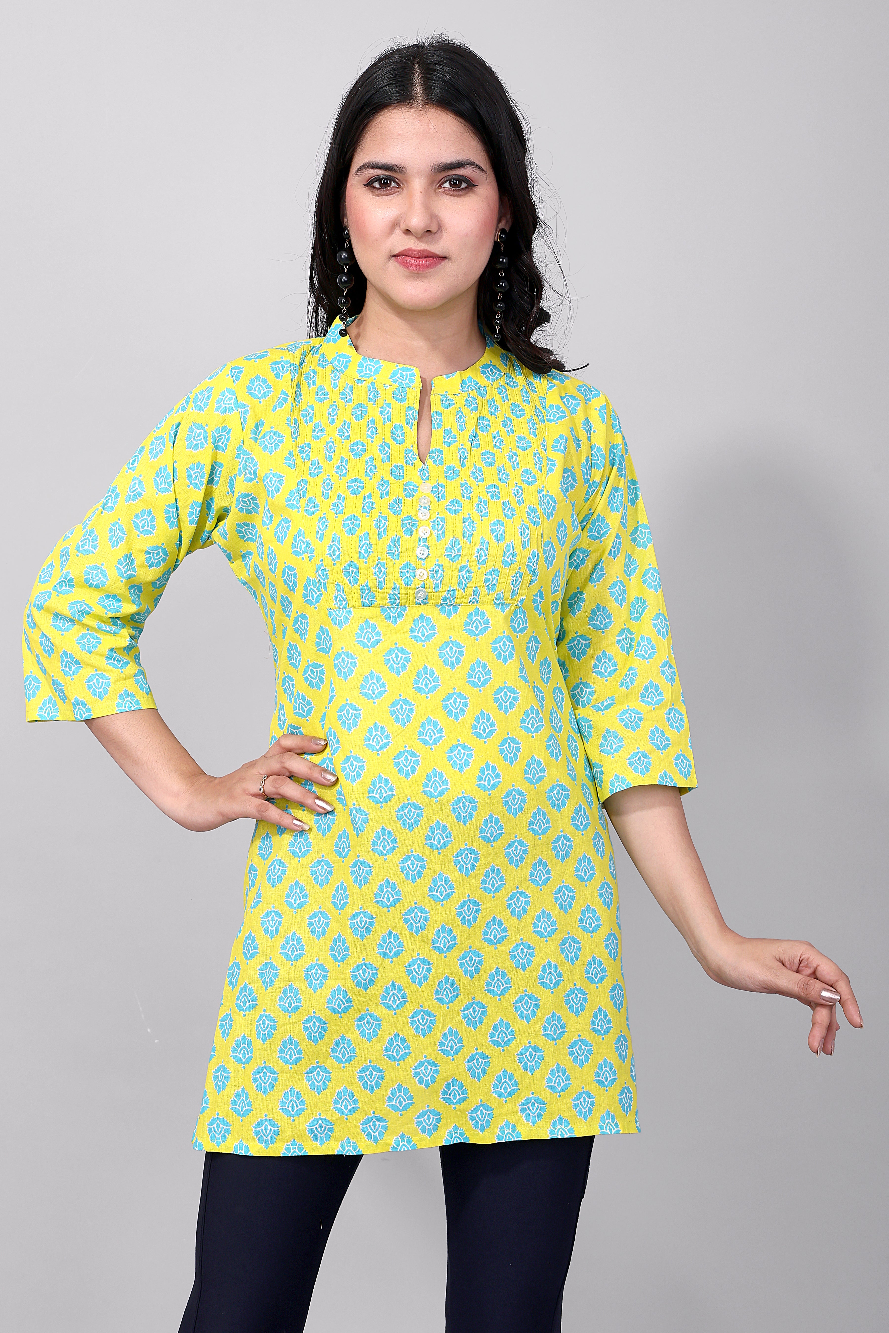 Effortless Elegance – Green Yellow Printed Cotton Kurti for Everyday Comfort Bring...